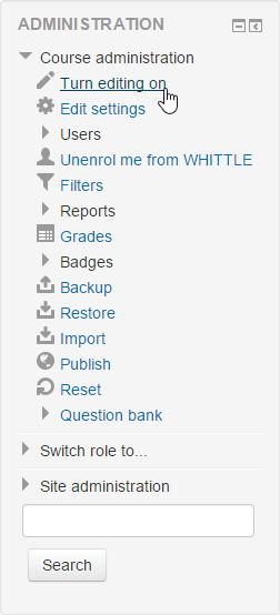 Firstly, enable editing within Moodle by clicking the Turn editing on link.